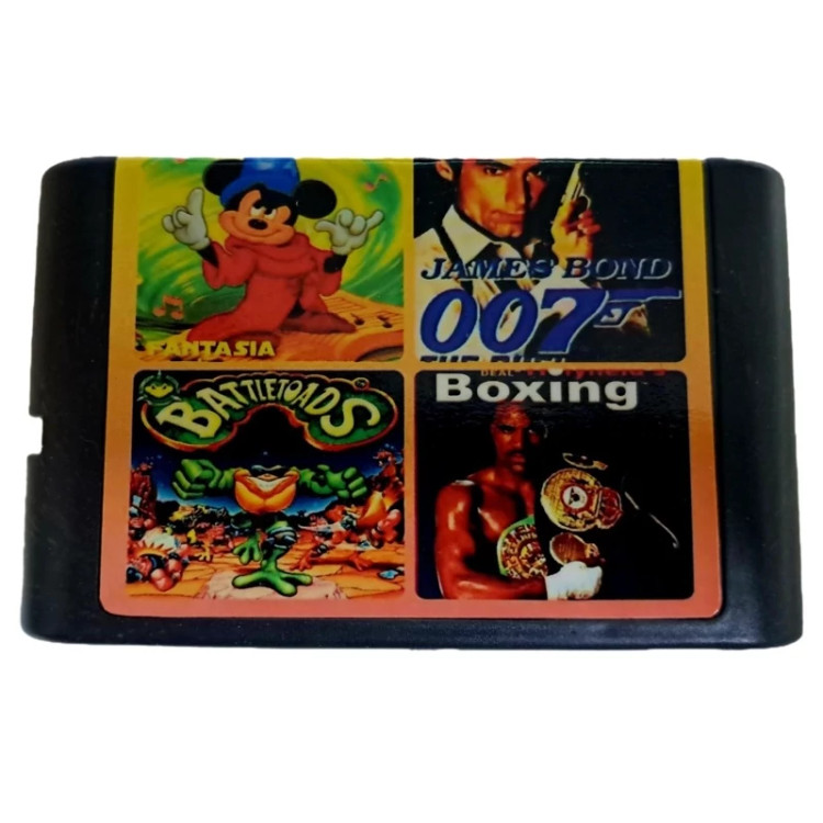 کارتریج 4 لبه سگا جیمز باند 007 (یک نفره،اکشن تفنگی) فانتاسیا(یک نفره ،ماجراجویی فانتزی) بوکس (یک نفره،دو نفره،ورزشی) قورباغه جنگی(یک نفره،دونفره،اکشن)