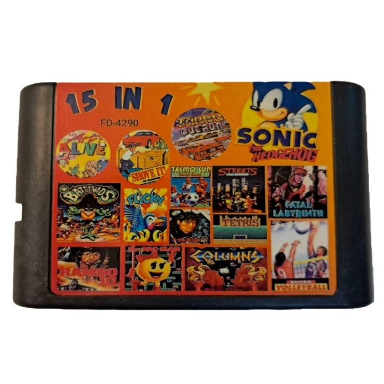 کارتریج 15 لبه سگا شورش در شهر 1 (یک نفره،دونفره،ماجراجویی) والیبال(یک نفره،دونفره،ورزشی) فتال (یک نفره،رزمی) فوتبال(یک نفره،دونفره،ورزشی) آرت (یک نفره،نقاشی) فلیکی(یک نفره،فانتزی) سونیک(یک نفره،ماجراجویی) تتریس(یک نفره،خونه سازی) میس پک من(یک نفره،فانتری) کولومس(یک نفره،خونه سازی) قورباقه جنگی(یک نفره،دونفره،ماجراجویی) جعبه چین(یک نفره،فکری) توربو (یک نفره،ماشینی)